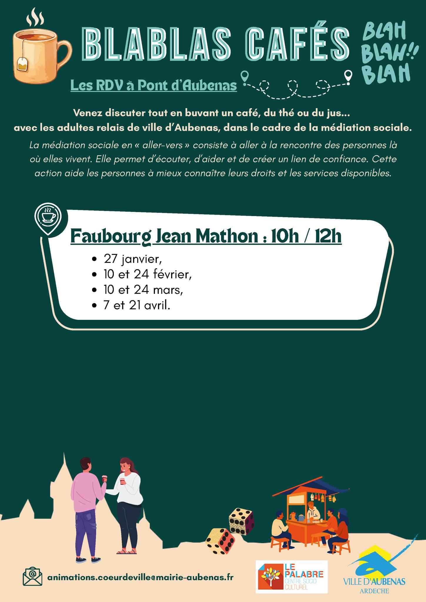 Venez discuter avec les adultes relais de la ville d'Aubenas, dans le cadre de la médiation sociale.